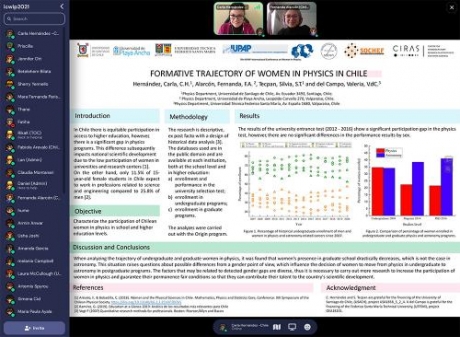 Más de 300 Investigadoras de 50 países participaron en la 7ª Conferencia Internacional de la IUPAP sobre Mujeres en Física, un encuentro virtual que se celebra cada 3 años y que busca impulsar la participación de las mujeres en la disciplina. La instancia, a la cual solo se puede acceder por invitación, buscó contribuir al desarrollo de colaboraciones de investigación más estrechas que permitan establecer vínculos entre investigadores de distintas regiones del globo, para así "crear un legado duradero de nueva ciencia", señala la IUPAP en su convocatoria.